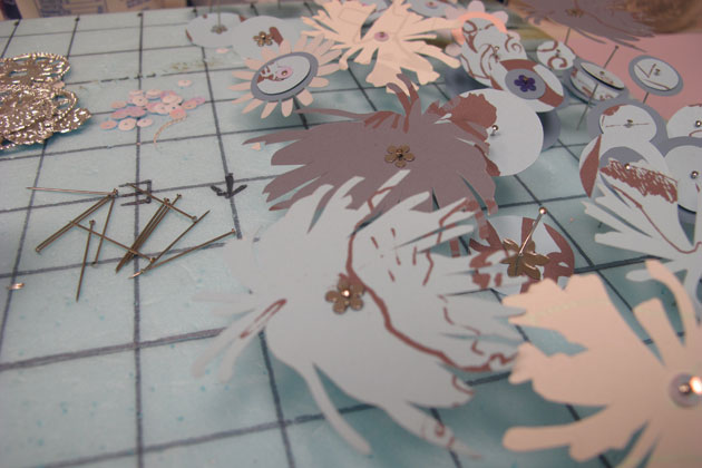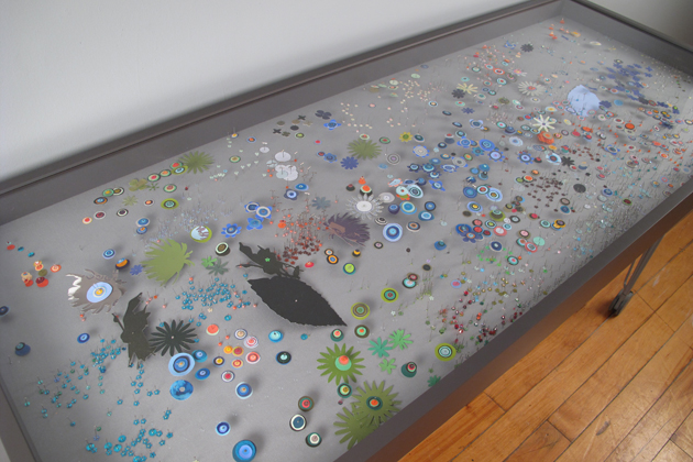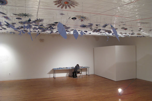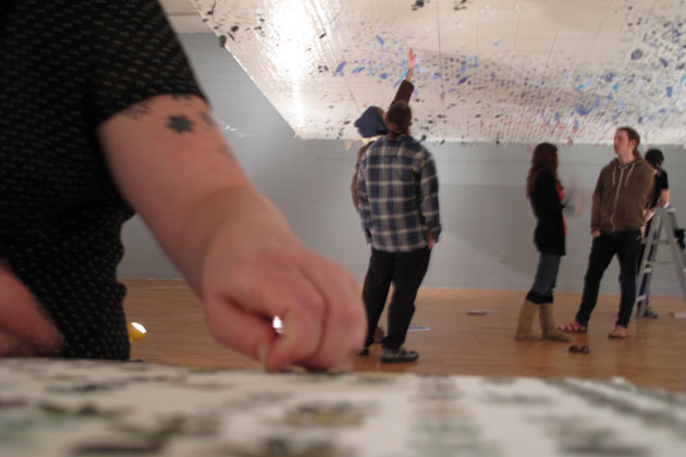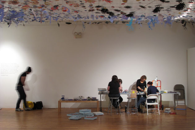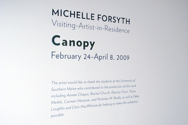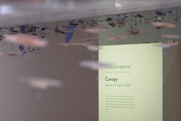 For a period of ten weeks during the spring 2009 semester I was a Visiting-Artist-in-Residence at the University of Southern Maine. While there I worked with the students to create an elaborate cut-paper installation for USM Art Gallery entitled Canopy. The students were Aimée Chaput, Rachel Church, Mary Cloutier, Patricia Flynn, Tonya Meikle, Carmen Menjivar, and Nicholas W. Reddy.