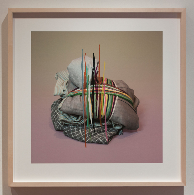 Footnotes was my first solo exhibition in Toronto. It included photographs of bundled objects and text passages that have been folded and photographed against patterned backgrounds. The work was accompanied by a key in the form of a text panel that provided further context for each work.