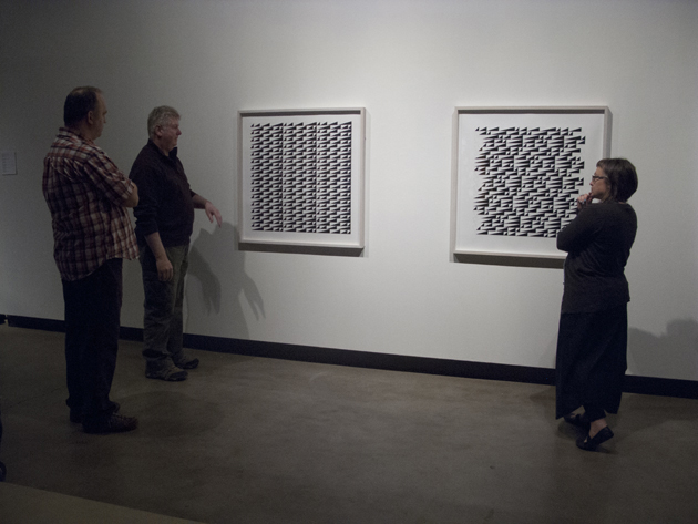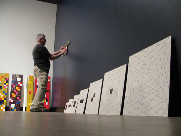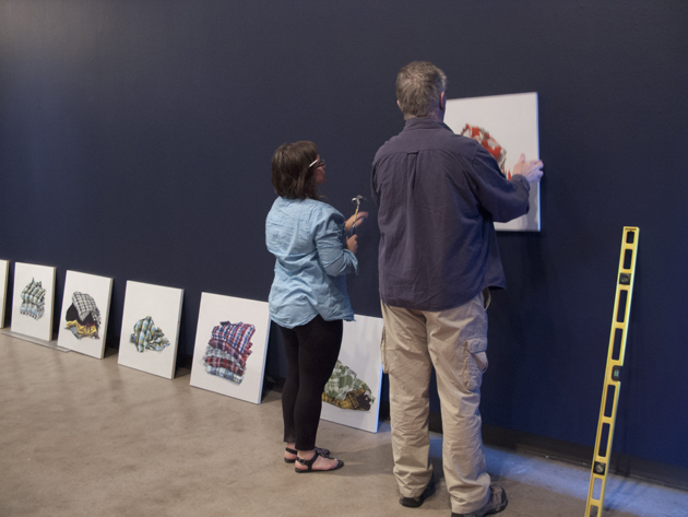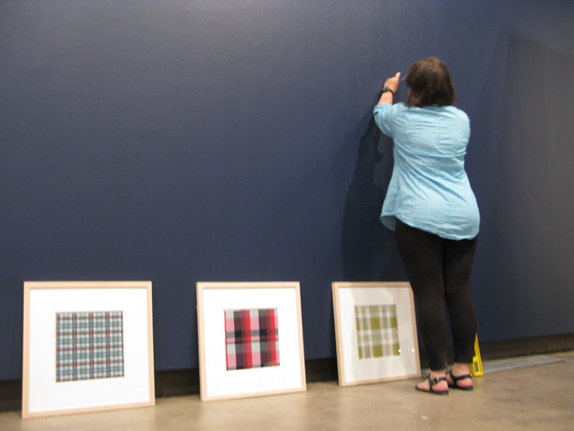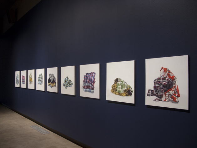 WSU Colleagues, Michelle Forsyth and Christopher Watts explore systems sequence, grids, color and pattern in their recent works. Michelle Forsyth’s recent work depicts the clothing of her husband. Her faithful depictions of his plaid shirts elbow their way into the tradition of abstract painting, yet the paintings' titles suggest a personal narrative that underlies the work. Chris Watts’ work represents a long-term interest in patterning, order and to a certain degree spiritual or esoteric ideas. His images use numbers to explore location and sequential relationships—referencing cellular structure or even the double helix of DNA. The forms are not biomorphic but relate more to crystalline arrangements and deeper levels of order found in nature.
