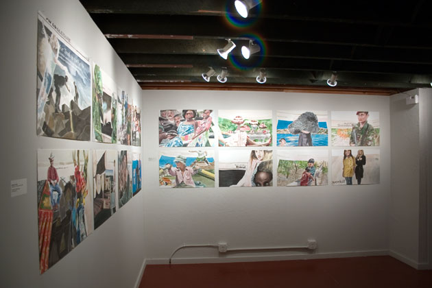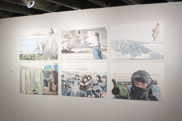 This series of Sunday Paintings consists of 53 watercolor paintings done from sculptural collages of the Sunday New York Times in 2006, between Sunday, January 1 and Sunday, December 31, 2006. The work examines the connection between the realm of leisure and the invasive images that tend to permeate that sphere in our society. The New York Times, as with many contemporary newspapers today, often contains at least one image of a military action, death or some kind of human suffering, yet the Sunday New York Times is associated with leisure due to the fact that its sheer volume promises no swift reading. It is this paradox that I attempt to uncover in this series of paintings documenting the Sundays in 2006.