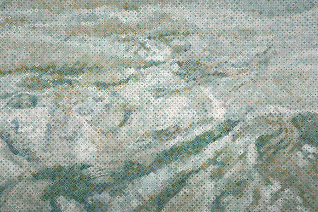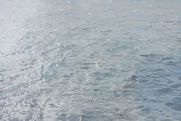 On June 30, 1900, a fire broke out on Pier 3 in Hoboken, NJ. Within fifteen minutes of the ignition, the blaze raced a quarter mile along the piers and continued to burn until several passenger liners and multiple small boats were on fire. Of the hundreds who died that day, many were trapped in ships whose portholes were too small to pass through. This piece documents the surface of the Hudson River where the event took place.