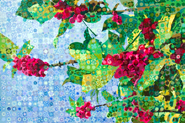 Sayward Fire, Campbell River, BC, Canada, July 5, 1938, (#20 from the 100 Drawings Project), 2008, Watercolor, gouache, pigment based ink, and sequins on watercolor paper, 36 x 54 inches, private collection.