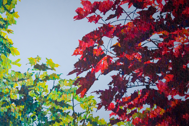 On the morning of Thursday, October 14, 1954, Hurricane Hazel reached southern Ontario. By midnight of the following day, more than eight inches of rain had fallen and much of the metro area of Toronto was flooded. The Humber River rose twenty feet. Fourteen houses were swept into the river and thirty-two residents were killed. This piece documents some foliage on the side of the river in Raymore Park, which is dedicated to the memory of the disaster.