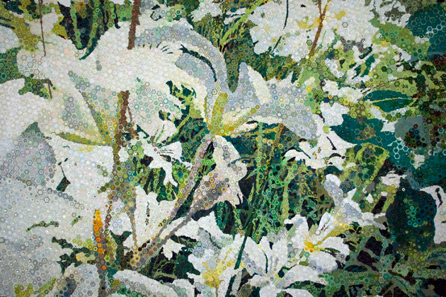 On the morning of November 7, 1940, only four months after it opened to the public, the first Tacoma Narrows Bridge dramatically collapsed. Although no human lives were lost, a dog perished after it was abandoned in a car. The bridge, nicknamed “Galloping Gertie” for its wild undulating motion, attracted many visitors who would drive for miles to ride its swaying roadway. On windy days, cars were reported to vanish and reappear several times during a single crossing. This piece documents some dandelions growing near the site of the collapse.