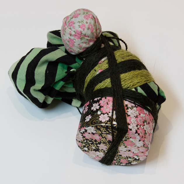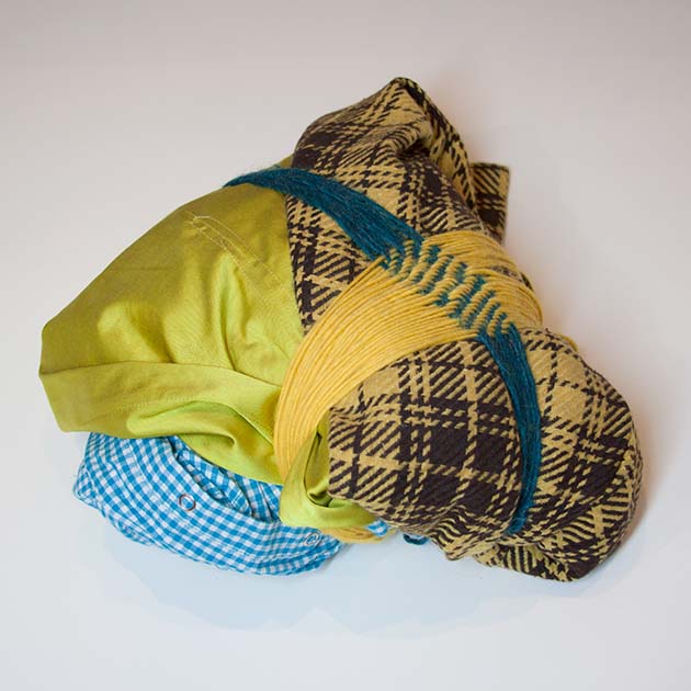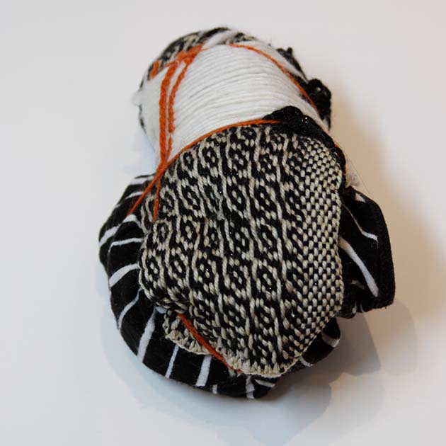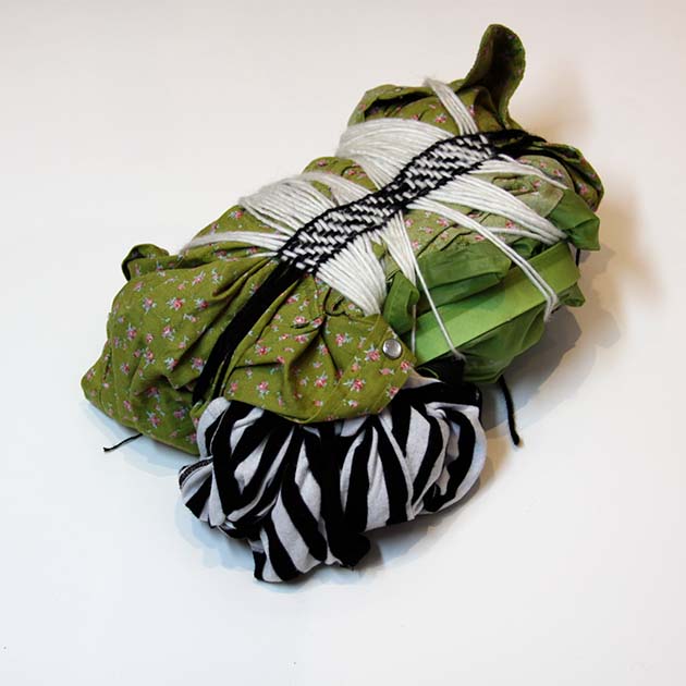various old clothes, yarn and secret note , 6x9x7 inches (destroyed )