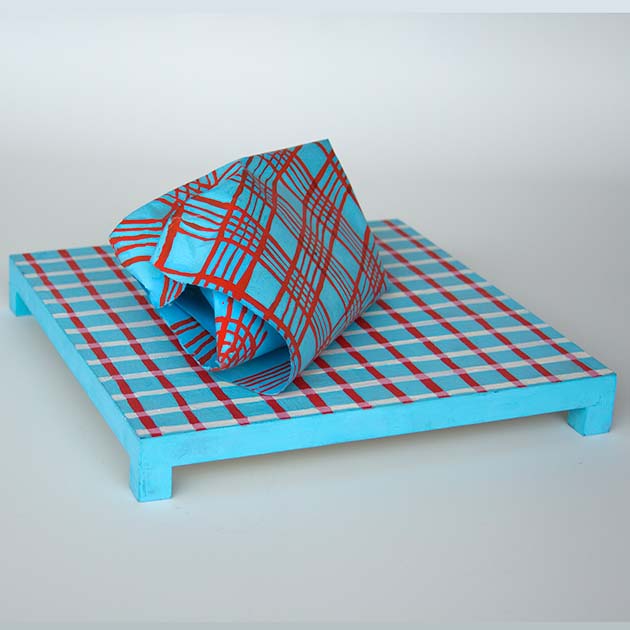 Blue and Red Plaid Prop on Small Blue and Red Platform, 2016