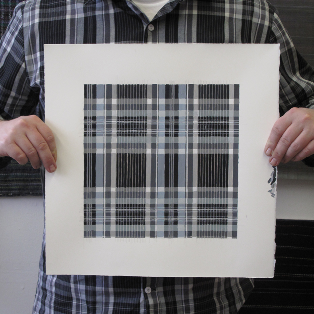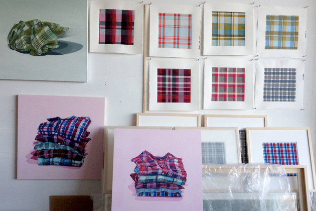 This work is based on the patterns of my husband's shirts. Varied in both stylistic and material approach, the work consists of paintings on linen or wood, and weavings. The work draws from an intimate exchange and familiarity with the person I care about most deeply, and the process of making these paintings is a labor of love. Each work becomes a monument to the labor that comprises it.