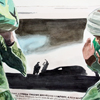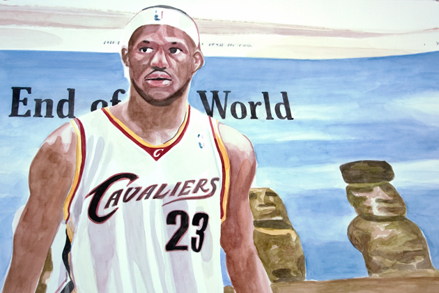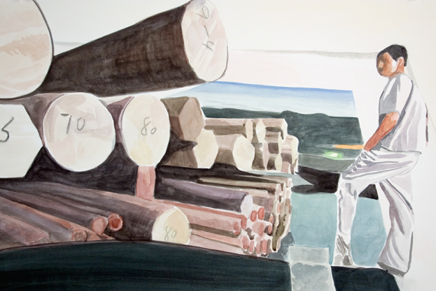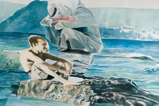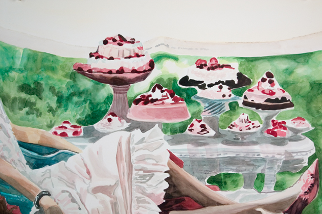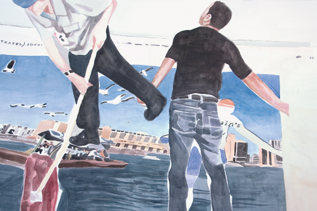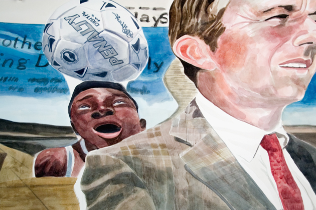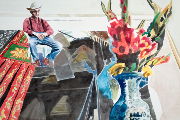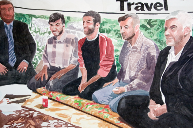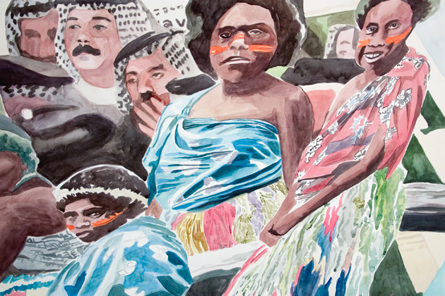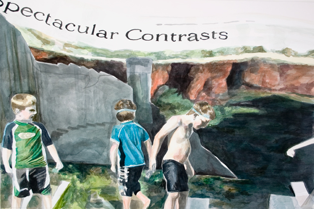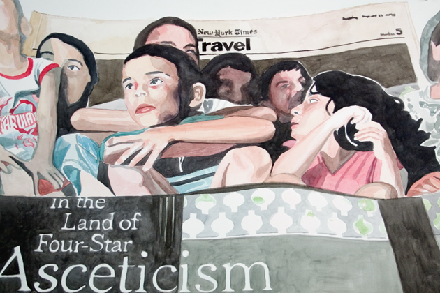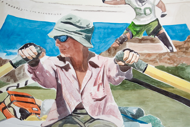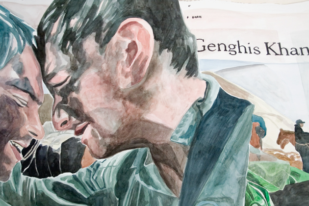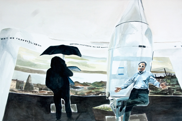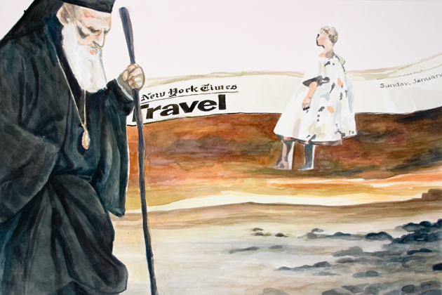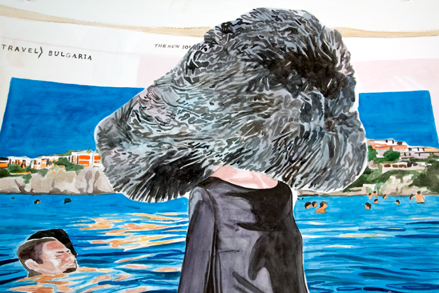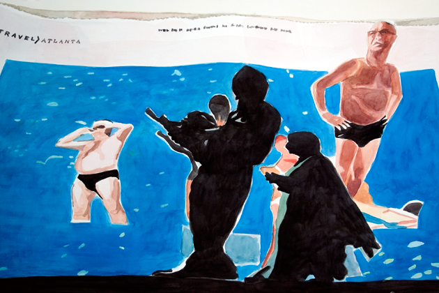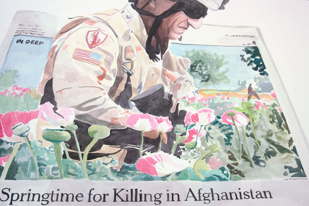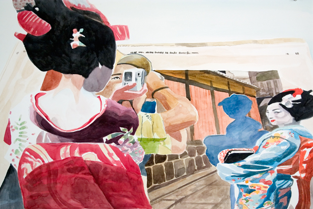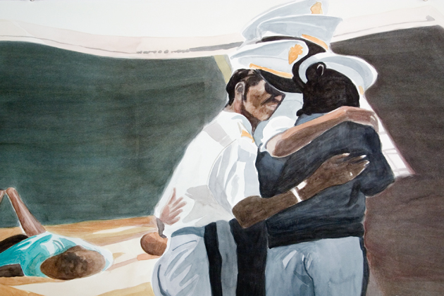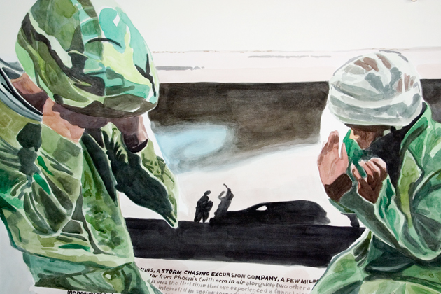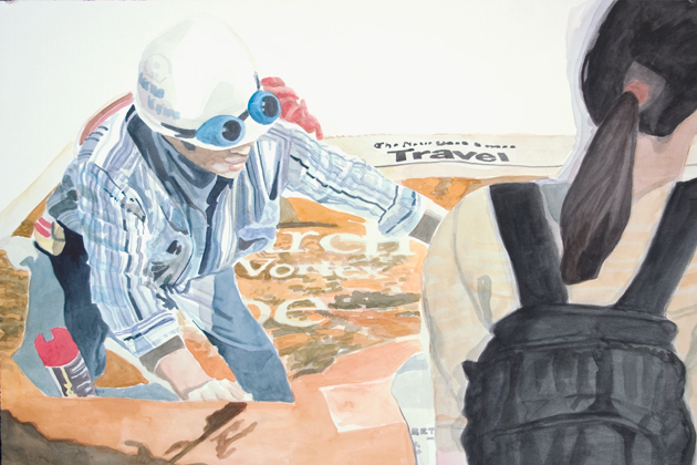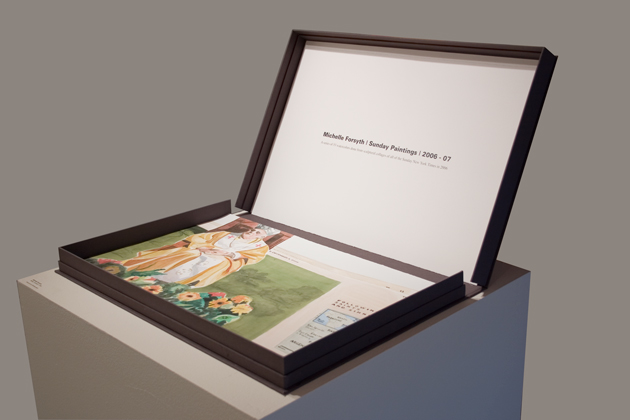 This series of Sunday Paintings consists of 53 watercolor paintings done from sculptural collages of the Sunday New York Times in 2006, between Sunday, January 1 and Sunday, December 31, 2006. The work examines the connection between the realm of leisure and the invasive images that tend to permeate that sphere in our society. The New York Times, as with many contemporary newspapers today, often contains at least one image of a military action, death or some kind of human suffering, yet the Sunday New York Times is associated with leisure due to the fact that its sheer volume promises no swift reading. It is this paradox that I attempt to uncover in this series of paintings documenting the Sundays in 2006.