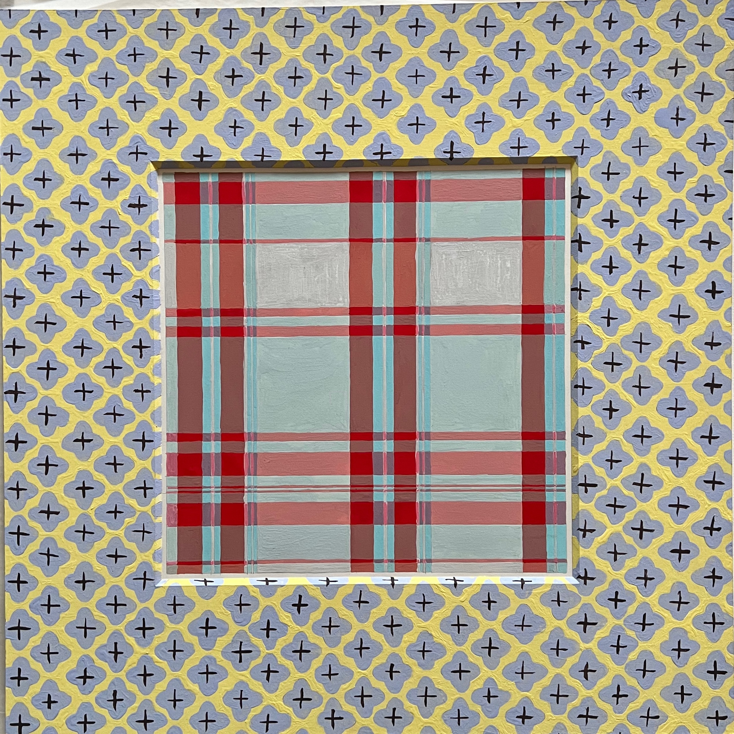 Mauve and Yellow Flourish, on Red, and Blue Plaid, 2013-24