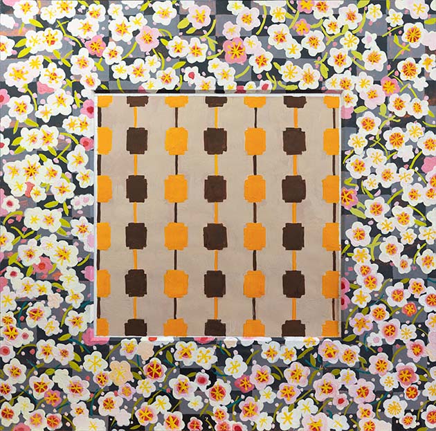 Japanese Floral on Orange and Brown Geometric, 2015-24