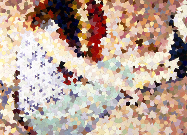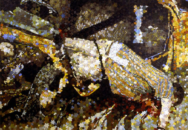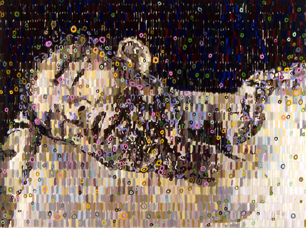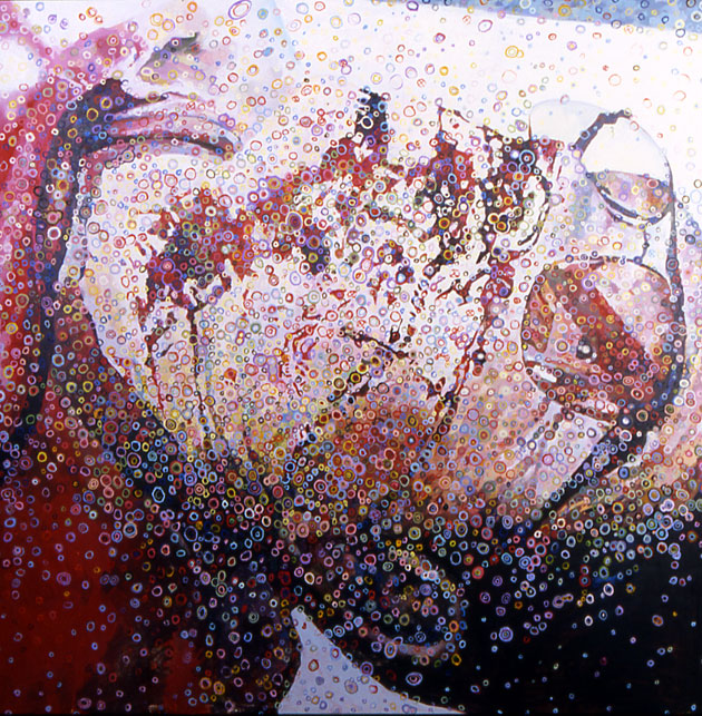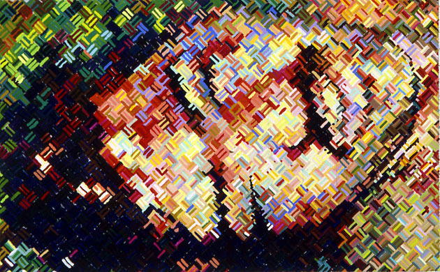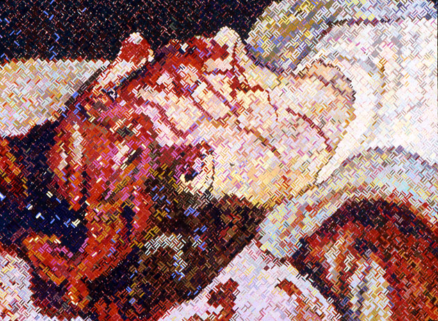 Using images of disaster and accident in this series of work, I worked to address the human costs involved in living within contemporary technological society. Based on a collection of images of trauma culled from television, newspapers, and the Internet that picture the aftermath of terrorist attacks, bombings, massacres and images of war, I used an elaborate and time consuming process in order to slow the images down. The grid bacame a nexus between the bitmapped images and the hand-crafted ones.